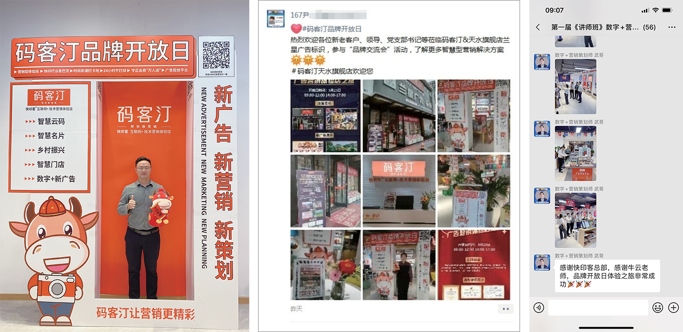 整店有明确结构划分,实现多种功能分区及特色定制服务,码客汀不仅仅为客户提供传统的广告物料,更结合互联网技术工具帮助客户做营销策划方案,在不增加广告投放成本的前提下,提高广告的获客效果。