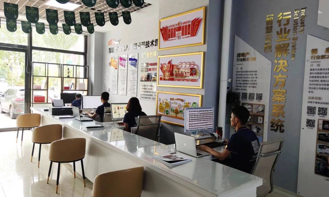 就像码客汀加盟店的样品展示区,所有做过的产品和服务范围进行标准化完整的展示。客户可以看到智慧党建、智慧乡村、餐饮、智慧社区等政企百业的解决方案,每个行业方案专区都有相关物料展示,客户还可以直接扫码体验广告店的专业能力和技术实力。