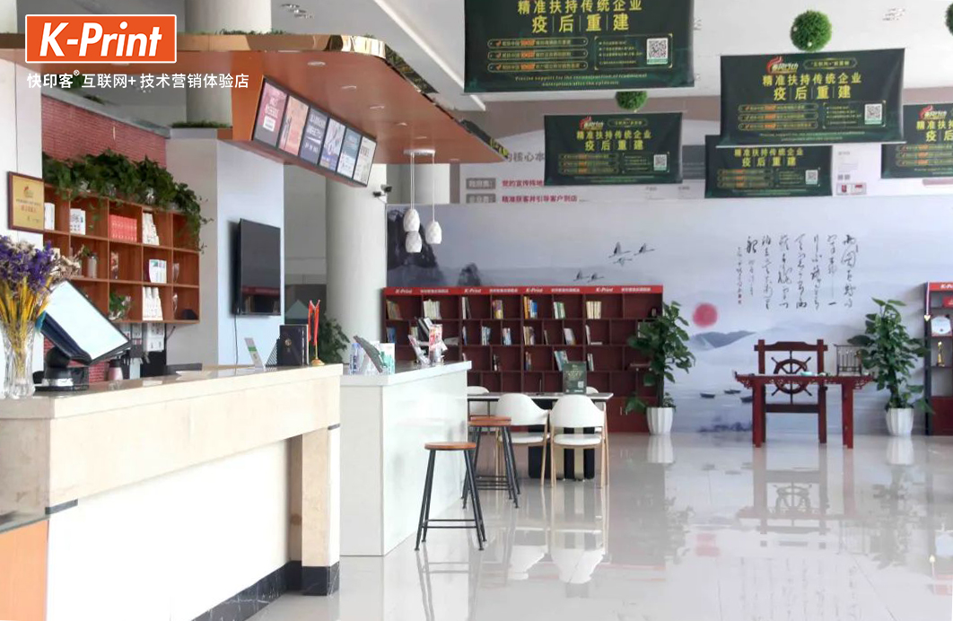KP店通过营销型店面布局、标准化运营和系统化管理为广告快印行业赋能升级,摆脱传统广告店“脏、乱、差”的店面形象,打造广告快印行业“星巴克”,给客户更高级更舒适的体验。