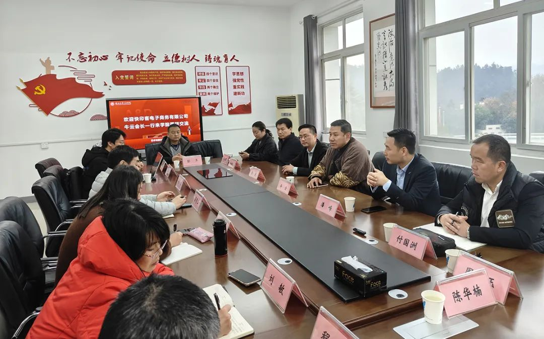 11月28日上午,快印客大生态系统掌门人、快印客产业学院院长牛云老师带队到访湖北汽车工业学院(简称“湖北汽院”),与湖北汽院艺术与设计学院副院长龚青山,分党委副书记王新,院长助理兼工业设计系主任刘敏等各学科教研组领导进行座谈交流,双方就深化校企合作事宜展开进一步的沟通交流。