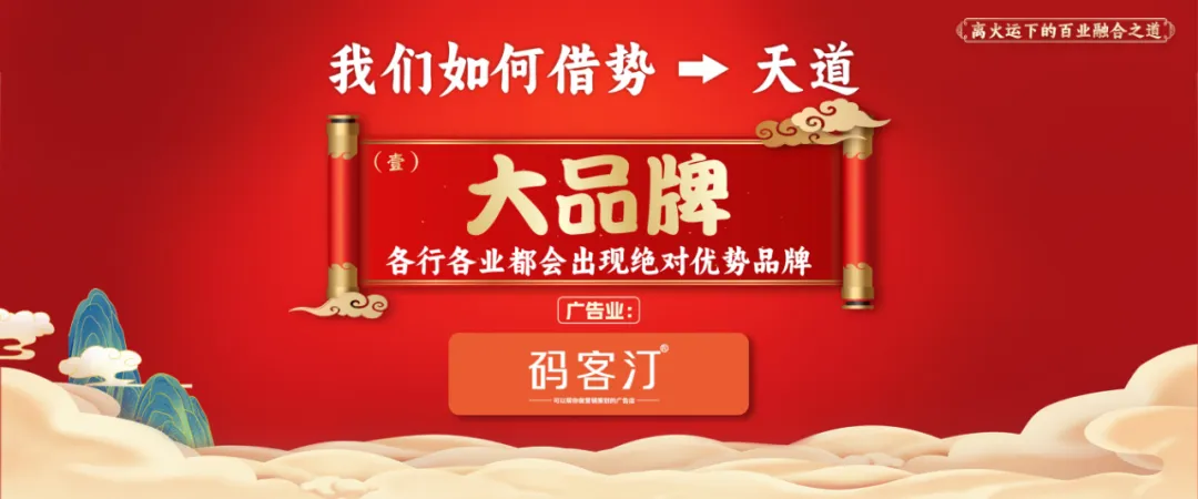 离火运下,哪个行业都会出现大品牌,所有的行业都会洗牌重新开始。比如,广告行业当中的大品牌——码客汀。