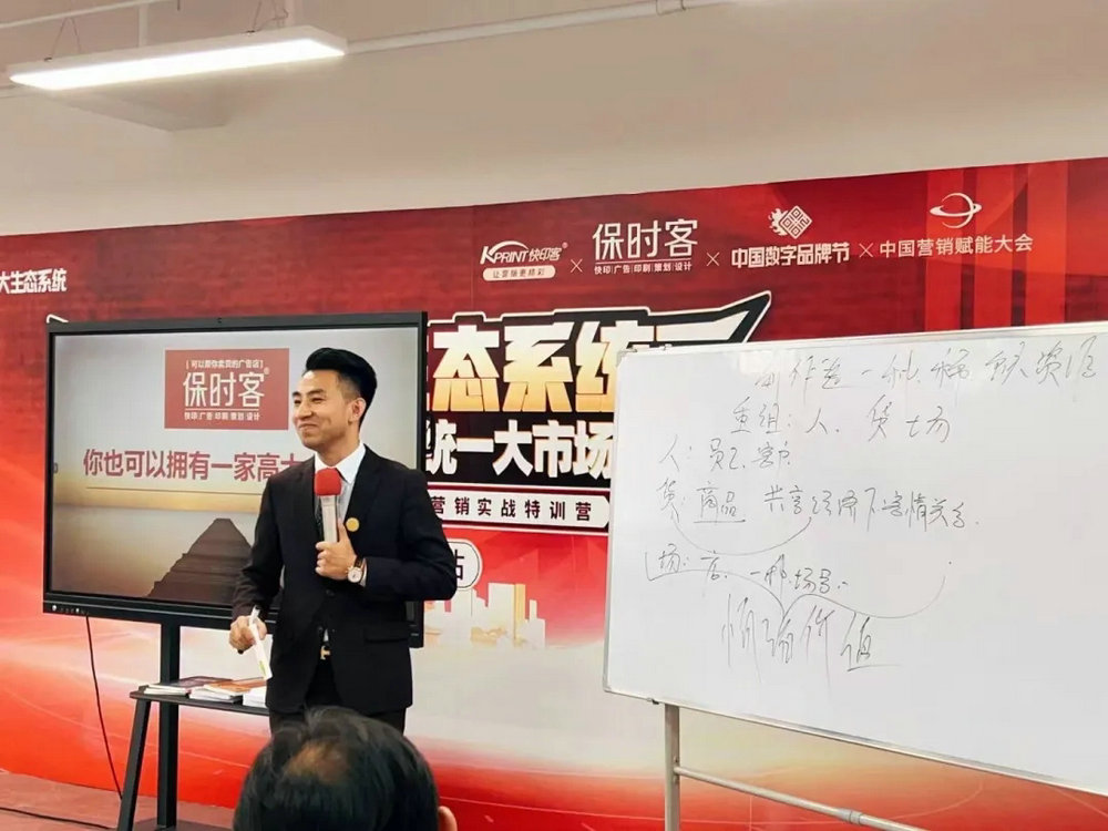 牛云老师作为快印客大生态系统掌门人、技术营销学派创始人,在本次特训营中倾情助阵,不仅带来了前沿的营销理论,更以前瞻性的思考引领参训者们探索未来的市场机遇,为新疆广告界点亮了营销创新发展的明灯,展现了行业领军人物独特的风采和魅力。