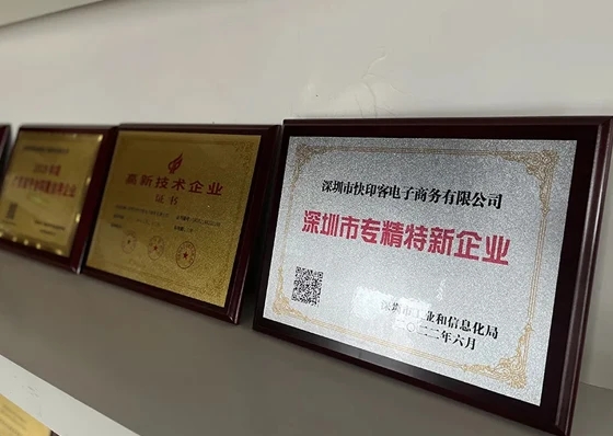 而且快印客荣获国家高新技术企业、深圳市高新技术企业、国家双软认证、广东省著名商标企业等多项荣誉认证、有强大的背书。