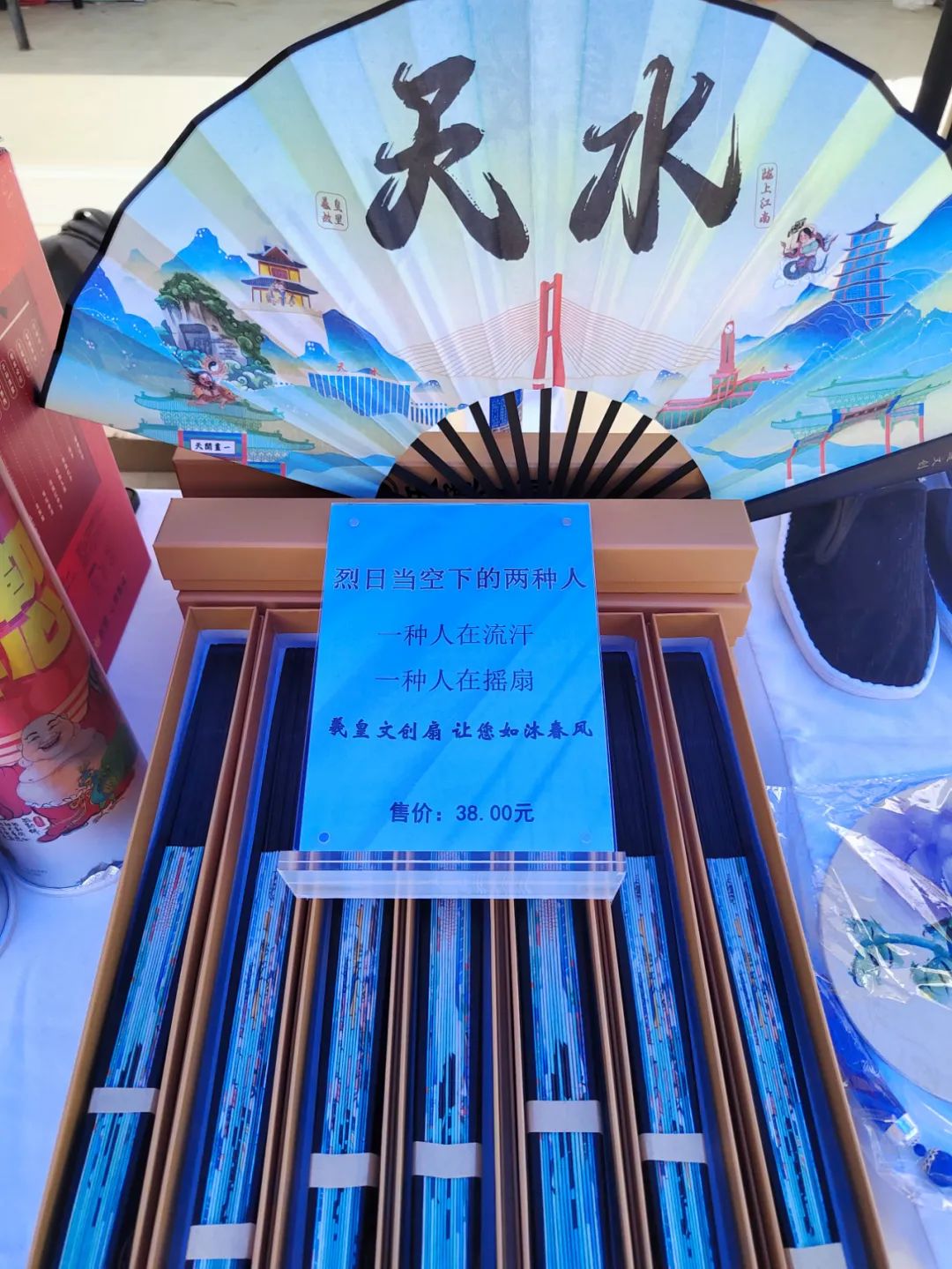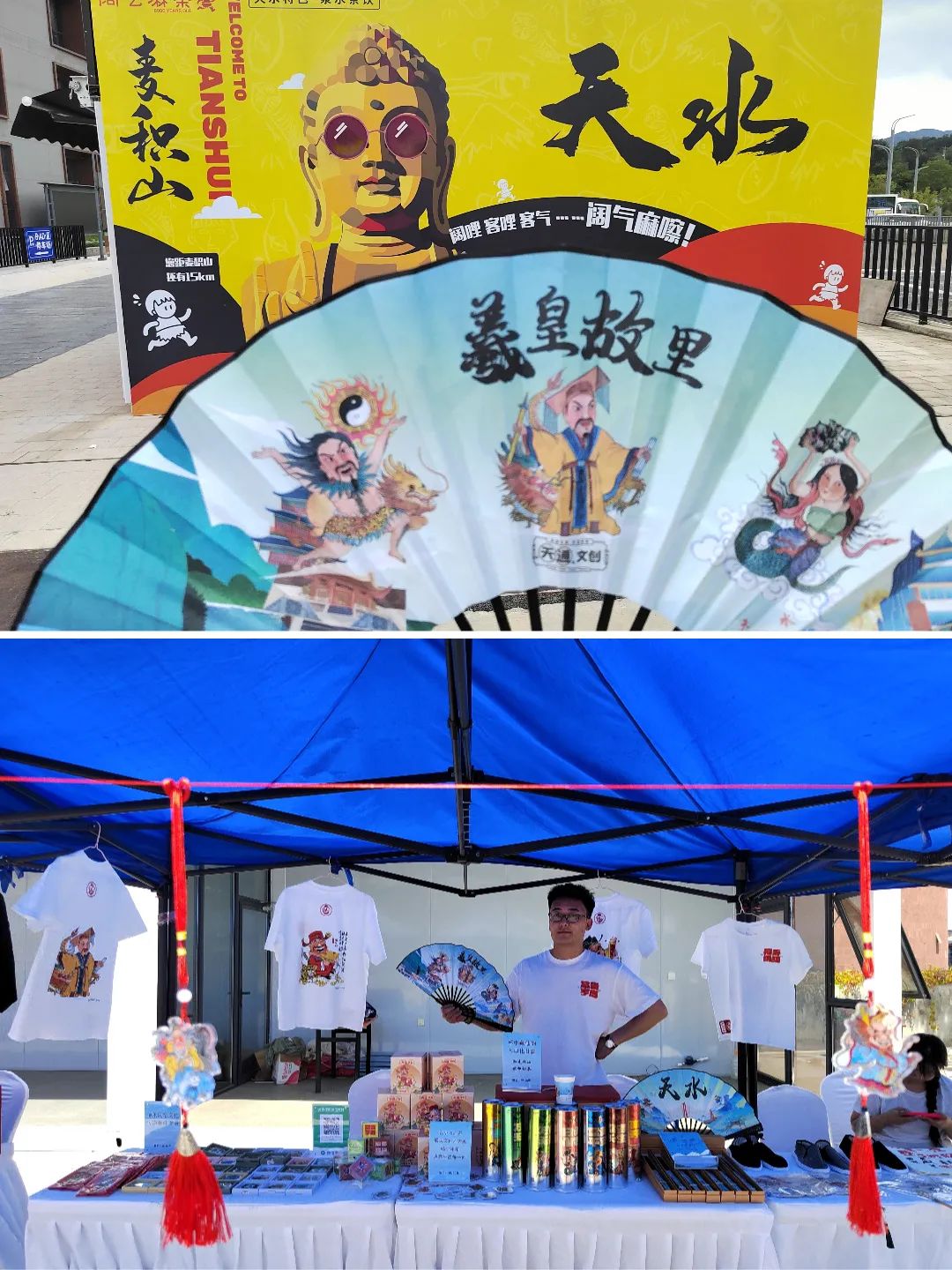 天通围绕天水“羲皇故里”这一地域文化IP,将伏羲爷IP与当地文化特色相融合,打造出“羲皇文创扇”、"伏羲爷主题T恤"等特色文创产品,为音乐节再添文化魅力!以“音乐+文旅+文创”带动天水文旅消费,擦亮天水文化名片!
