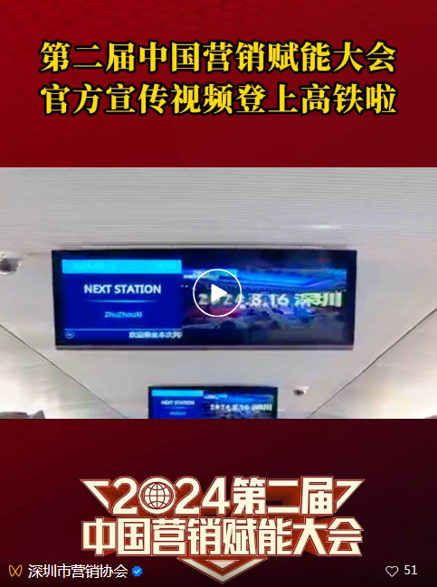 第二届中国营销赋能大会的官方宣传视频在7月份强势登陆高铁,引发广泛关注和热烈讨论!