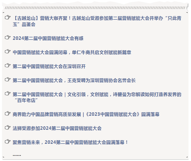 各大媒体将持续关注并报道“2024第二届中国营销赋能大会”,全方位、多角度展现大会的盛况,一同见证大会的精彩瞬间。敬请关注!