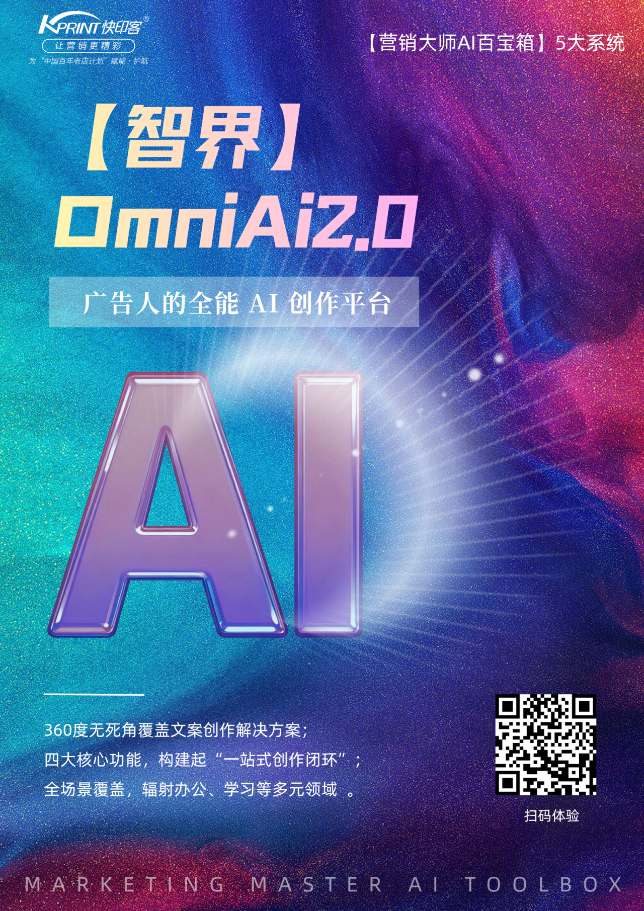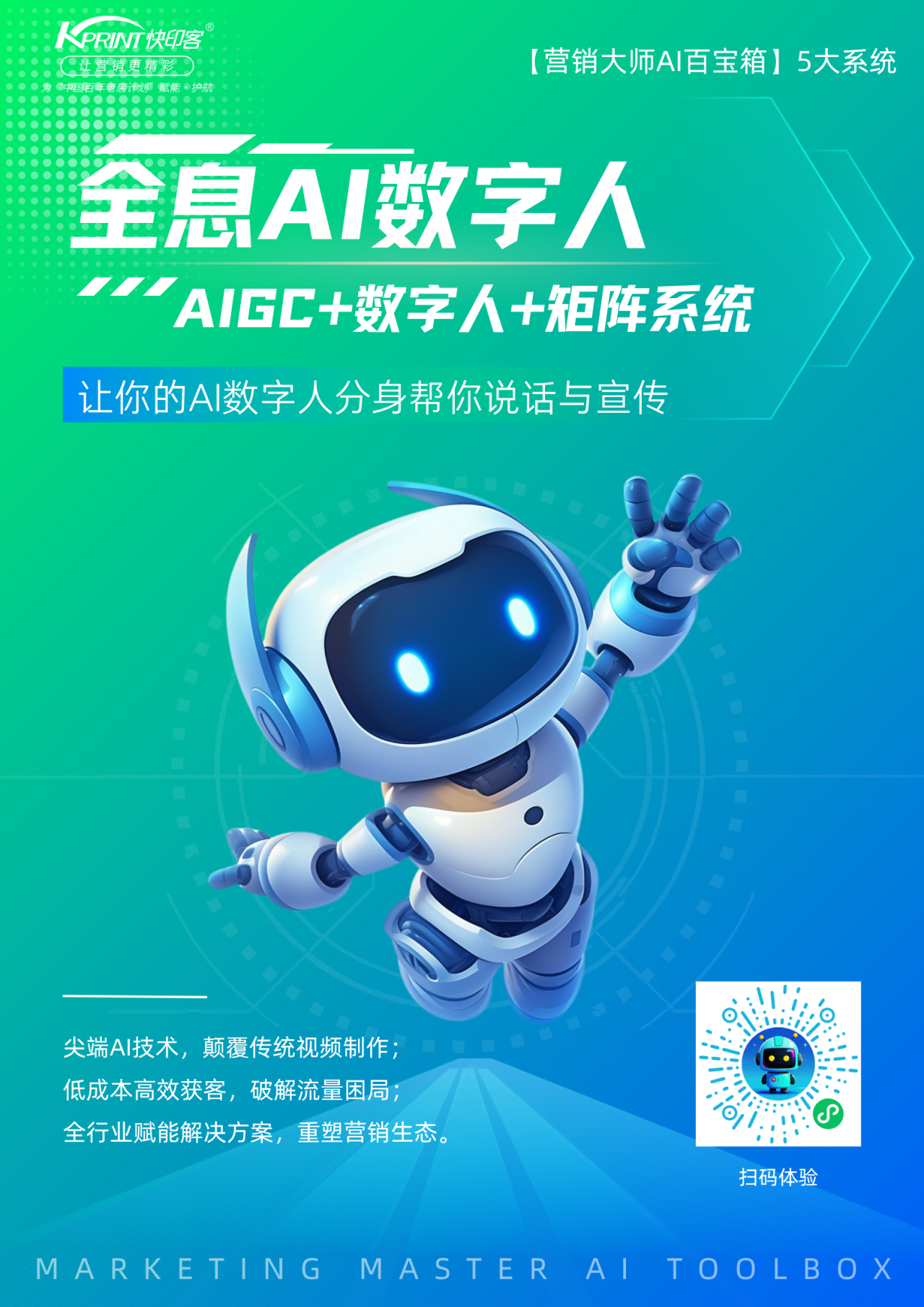 “营销大师AI百宝箱”包含:快印客智慧云码广告技术营销系统。