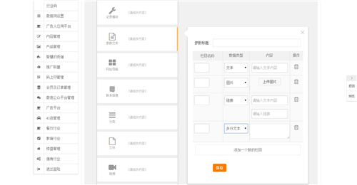 行业码的主要模块:标题、头部信息、图集、图文、记录模块、参数文本、网址导航、联系信息、分类、文件、音频、视频、添加微信、底部菜单。(以上模块可按不同行业特点自由增减*)